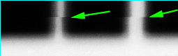 White arrows show jitter where stage has quickly moved and imaging commenced before stage settled in place.