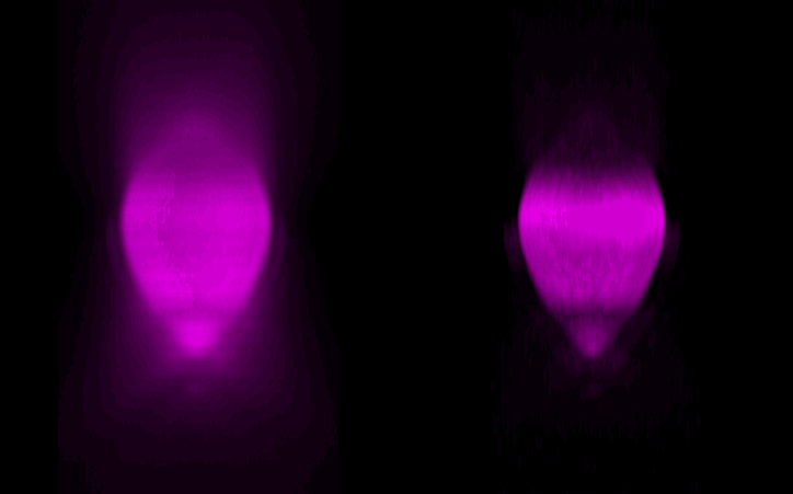 One bead was cropped out in XY and sliced in Z axis and scaled (4.8x in Y) for orthagonal pixels. 3D projection with ImageJ with transparencies set to 50 and 25.