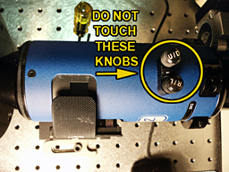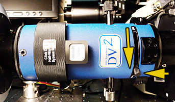 The DV2 splits the images through two separate filters so that two probes may be imaged with precise temporal and spatial resolution. The alignment is extremely sensitive and it is imperative that the alignment knobs not be touched except as the last step in a multi-step process that requires special training.