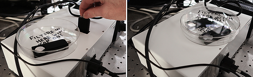 Always put unused filters in the closed tissue culture dish with the top on. Put the dish over the hole in the top of the unit.