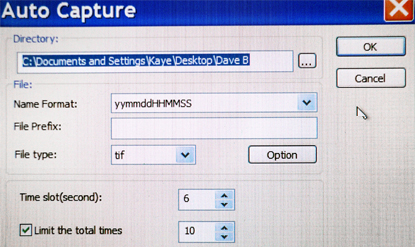 ![]() ![]() Another way to take images and have them saved to disk directly is via the Auto Capture menu. |