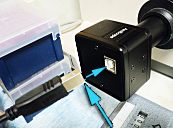 ![]() Camera on microscope. |