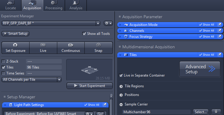 - In Tiles window choose Sample Carrier > “Multichamber96”.