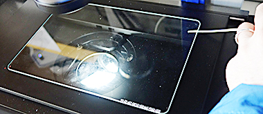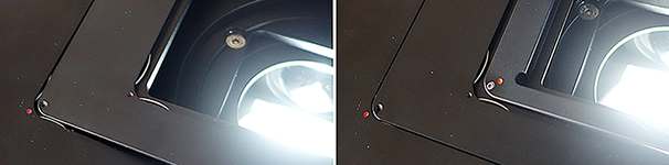 - Remove existing plate if necessary by putting hex key or wood dowel into notch in upper right to use as release lever.