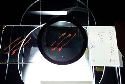 You want to make sure the space below the sample is as blackand non-reflective as possible. (More details here if interested.)