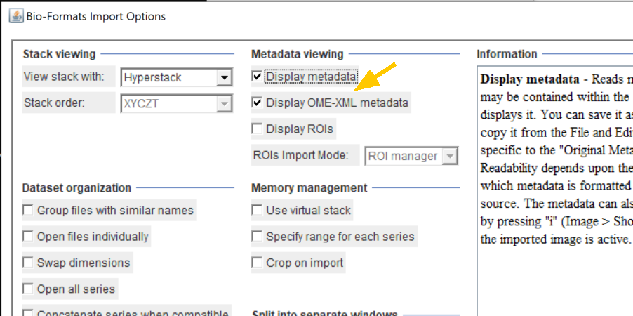 This method was tested using .czi files from Zeiss 880 and from Elyra 7 with ImageJ Fiji 1.53d45 Java1.8.0 on Win10 with BioFormats 6.5.0 30 April 2020.