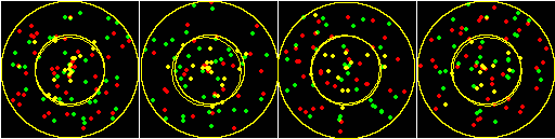 In this example the inner circle with radius 0.66 of the total radius has 50% of the spots colocalized and the outer band is random. (CZ_simulation_v100_with_defined_percentage_geometry.txt)