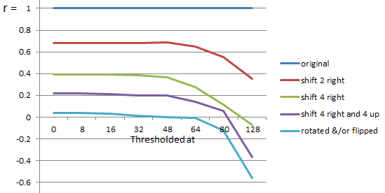 | Thesholded at | 0 | 8 | 16 | 32 | 48 | 64 | 80 | 128 |