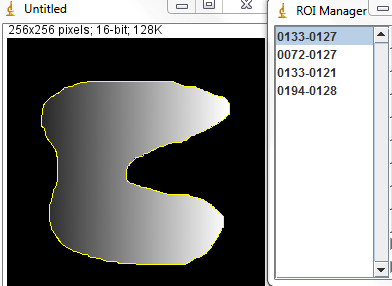 | Running the macro results in four ROIs being added to the ROI Manager list. | |