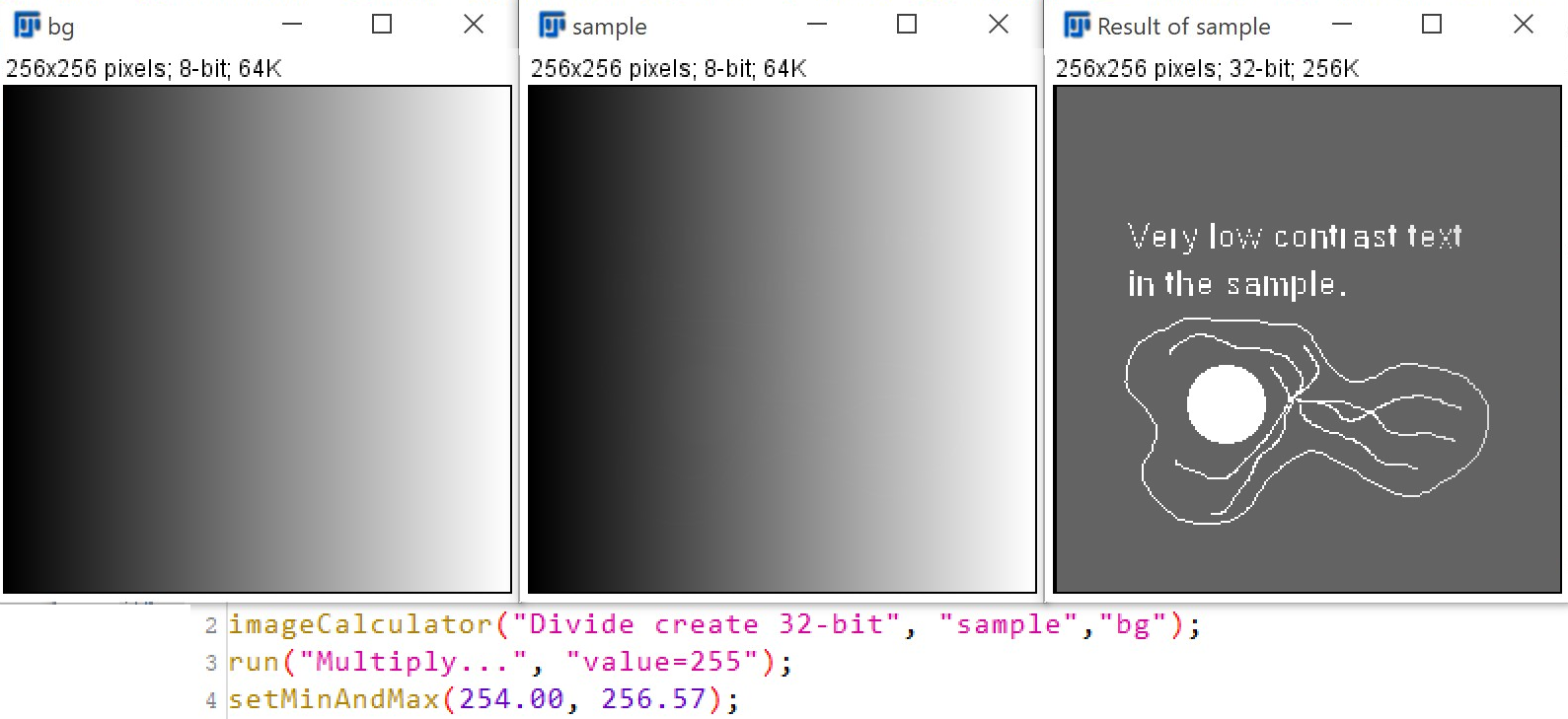 You need a background image. This is usually the sample out of focus but can be a blank dish or mounted slide with no sample, but the fluid in the dish must be the same depth or the mounted sample must have same mounting media etc as the biological sample. I like to take 4 to 16 images and average them. For the example below, setting the system to take a time lapse and then moving the sample as the images are collected, then avergaing the stack of out of focus images collected at different times, useually produces a good background image.