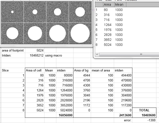 Raw data stack has a background of 100 with noise added. And cone data used for following image. The "error" is due to the noise added to the bg.