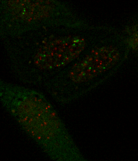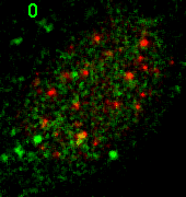 What this macro doesn't do, which a future version will do, is combine Z sections of the same channels. The following example is three serial sections of each green and red through time.