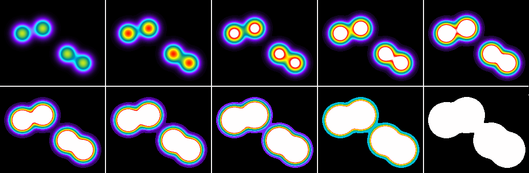 Without much explanation, here are examples of a single dataset shown in different ways to illustrate that intensity saturation is bad. At the bottom of this page is a brief explanation of how to show bright and dim signal in the same image while preserving underlying raw data for proper analysis.