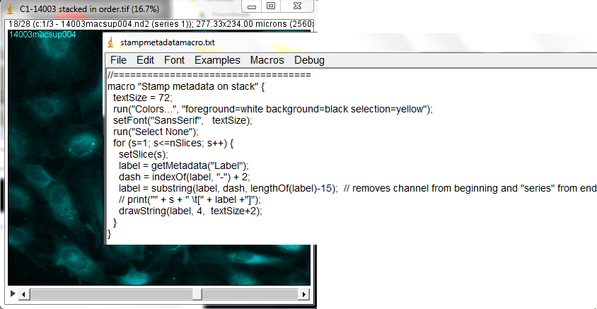 The following code shows how to extract the names of images that were put in a stack to display on the image or to report in measurement results.
