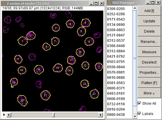 This page describes marking a field of isolated cells in a Z series such that each cell is individually made into a 3D movie and the movies are montaged into a single stack. Alternatively, the marked cells themselves may be extracted and montaged as a stack without the 3D processing.