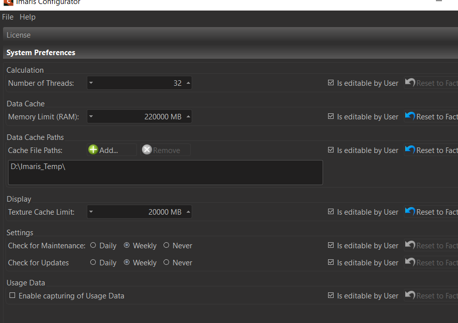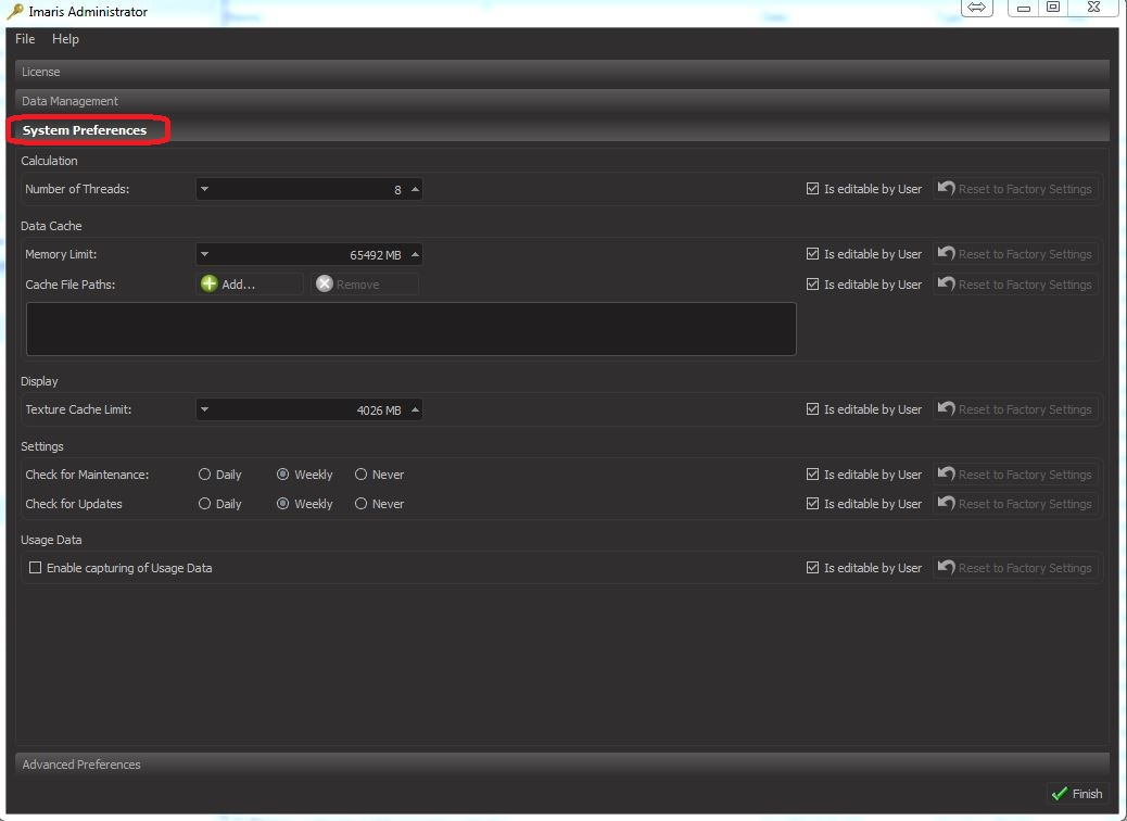 "System Preferences". Set it here for all user (ideal scenario). Next time you launch Imaris it should be set.