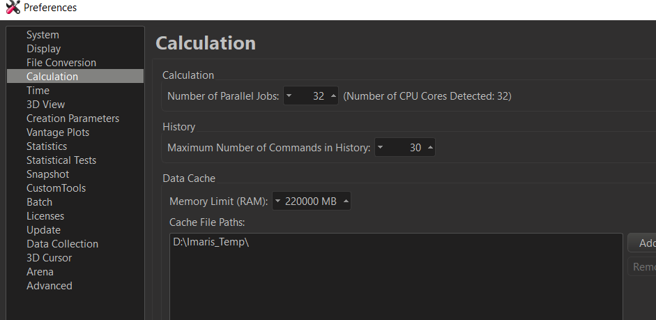 Thank you for reaching out to the Imaris Applications support team. You can change the Imaris cache drive in the Preferences (see attached screenshot). I typically set a folder directly on my D or E drive so that I can monitor it easily
