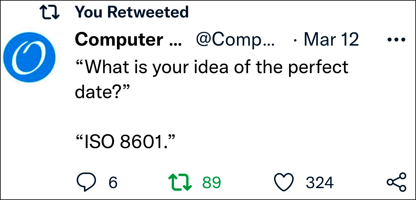 The ISO standard 8601 is meant for insternational data and, therefore, includes time zones and text cues for variability. Practically, we do not need these. For instance, we do not need "T" to signify where the days stop and hours begin. Also, we are not dating based on weeks. And we are breaking time into months and days; an alternative method is year followed by a three digit day, but this is not how we normally think. A problem with the strictest ISO format is that it includes special characters, such as "2022-04-03T10:08:16+00:00," but we cannot use these with our computer operating systems. ":" and "+" should not be used, but "20220403T100816Z" or "202204031008" would work for our purposes, or change the time to be a count of seconds or milliseconds if you are going this fine.