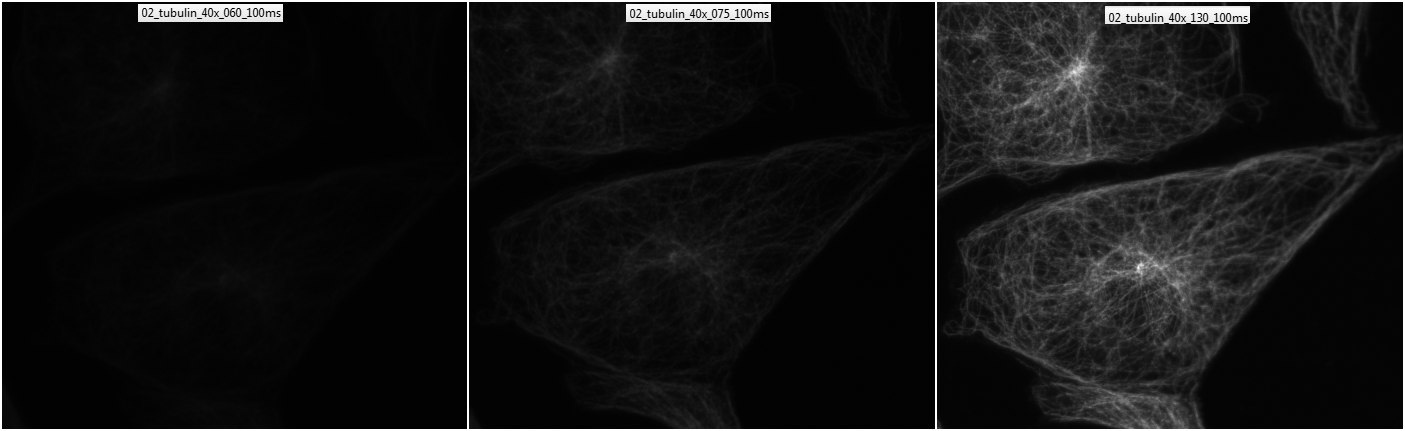 Left: Image taken with 40X N.A. 0.60 lens, exposure time 800 ms, camera set for low gain 10 MHz readout