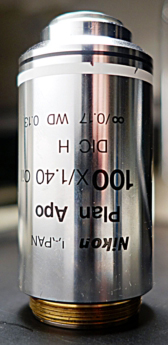 The 40X N.A. 1.3 lens with oil is designed for higher resolution.