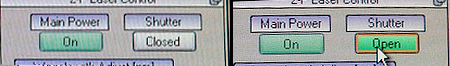 On the left, the laser shutters are closed. On the right they are open.