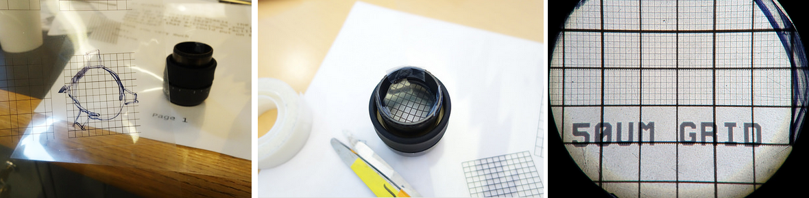 This tif file provides grids of 1 X 1 mm squares and 2 X 2 mm squares where each line is one pixel wide. If you have a printer that is finer than 300 ppi, you could redraw the grids yourself for finer lines or change ppi and get smaller boxes. In our case, we printed the grids on a traditional HP bw printer and on a HP LaserJet M551 color printer.