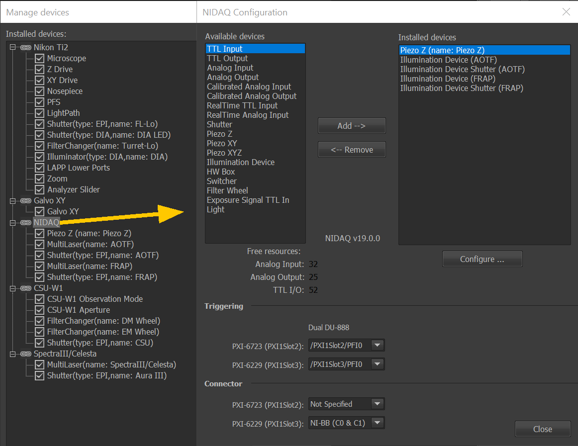 The settings from the first installation of the instrument are below the following ones taken in Dec 2019 after a reinstallation.