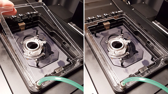 The chamber should be hydrated. The manual suggests 26 ml of distilled water in the metal trough at the perimeter of the stage insert.