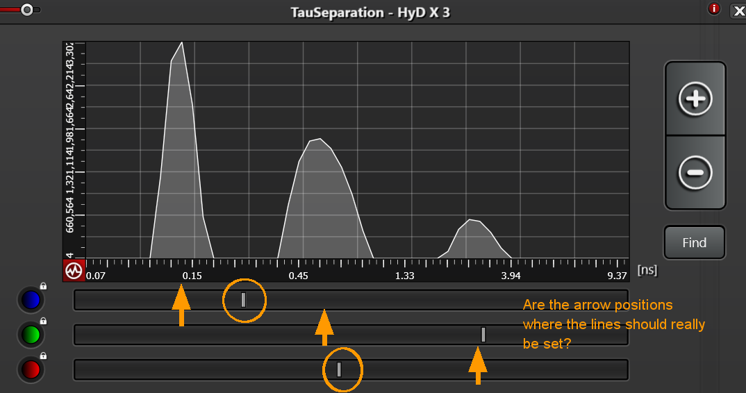 A big question is where to position the lines under the graph in TauSeparation. I would guess each should be directly below the peak of each curve. Is this correct?