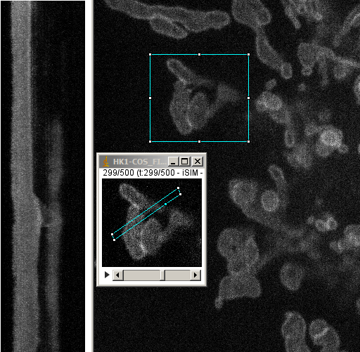 imaging GFP fusion with protein localized on the surface of mitochondria in COS cells in culture at 37 degrees C.