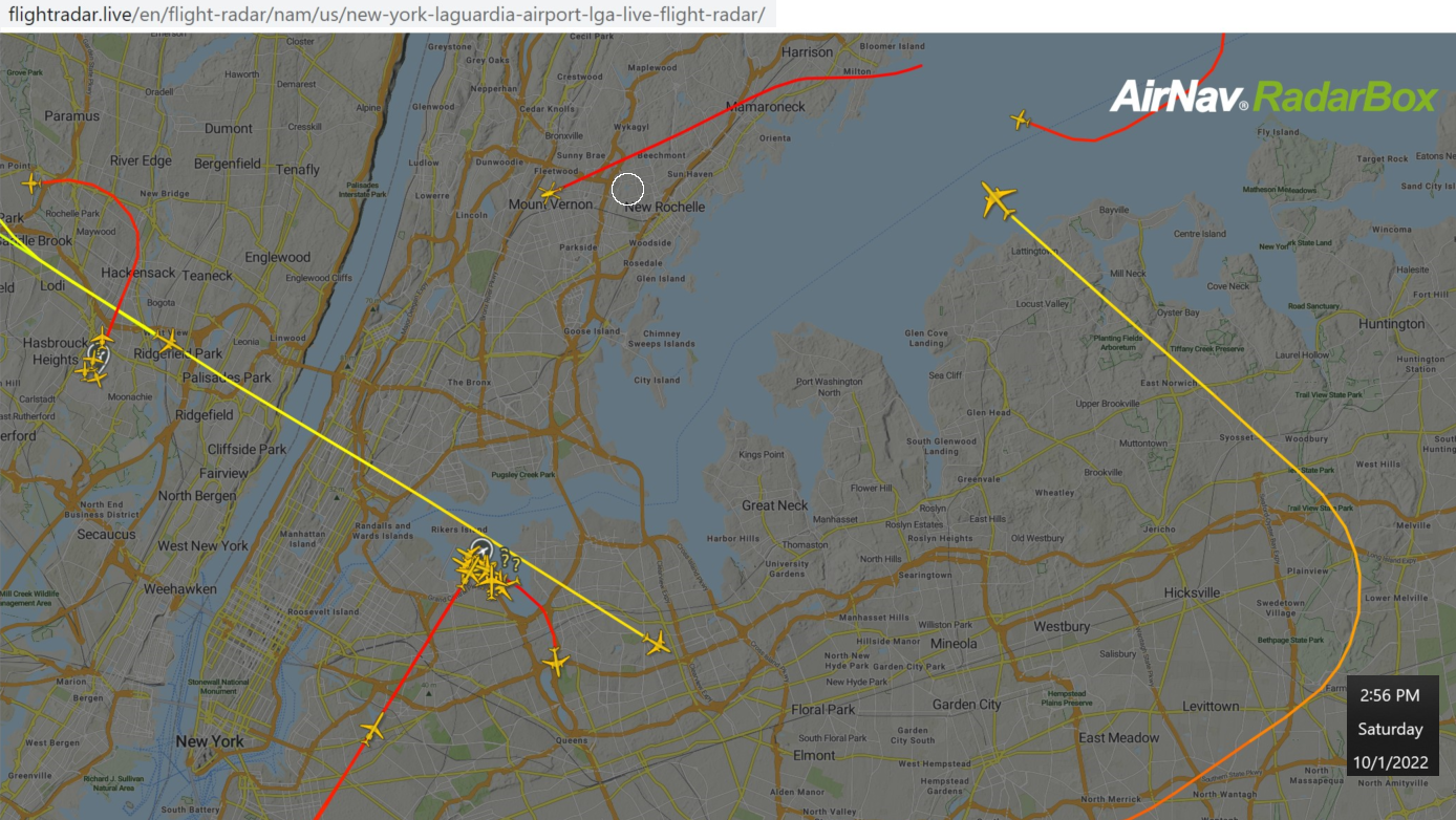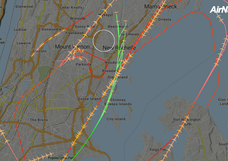 The expected trajectories, which diverge, for the flight that heads NE across Glenwood lake neighborhood are corrected, based on real data, later.