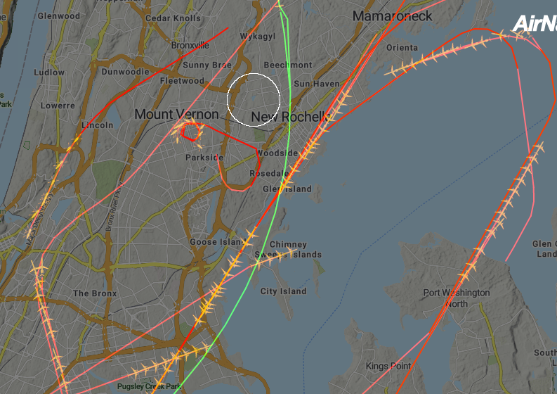 This map shows a very quiet afternoon in Glenwood Lake neighborhood (white circle) except for the helicopter headed SW.