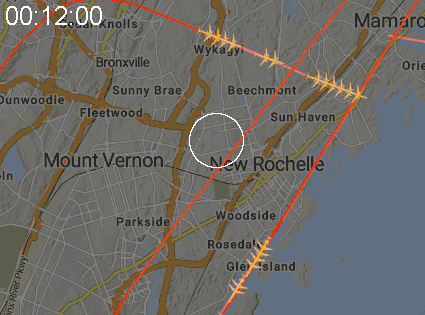 Out walking the dog I noted at 4:44 pm that a plane headed NE appeared to turn 90 degees to the east when it was N of Webster School. When I got in the house, I heard another one overhead. Here are the two flight paths marked with white arrows.