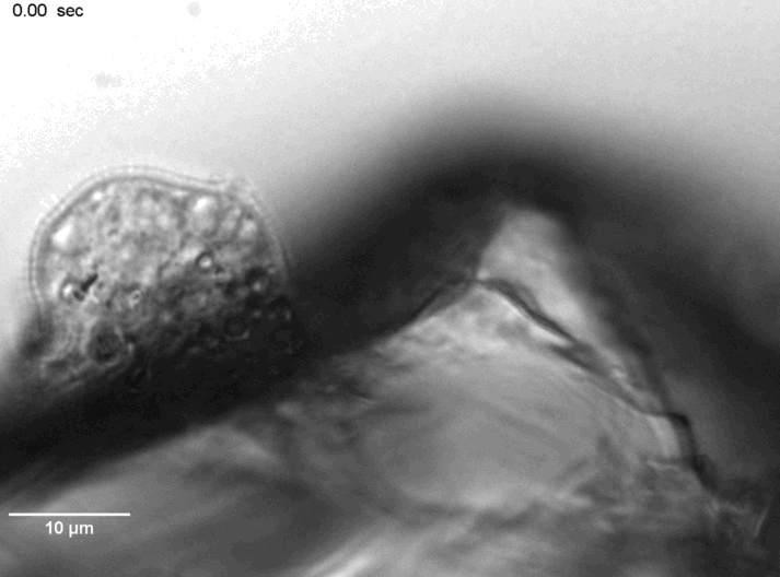 Amoeba. The movie below shows it crawling on a grain of sand.