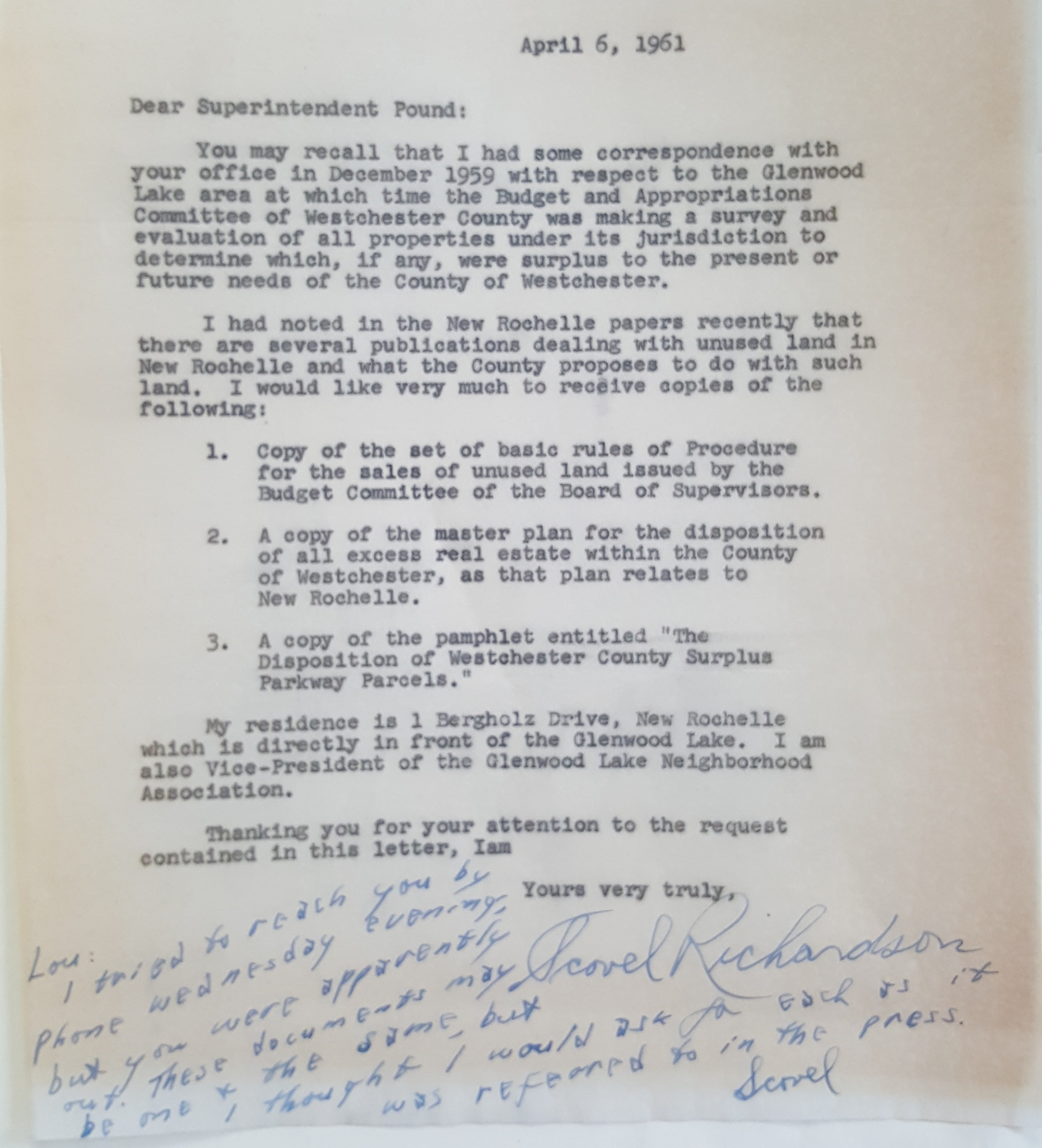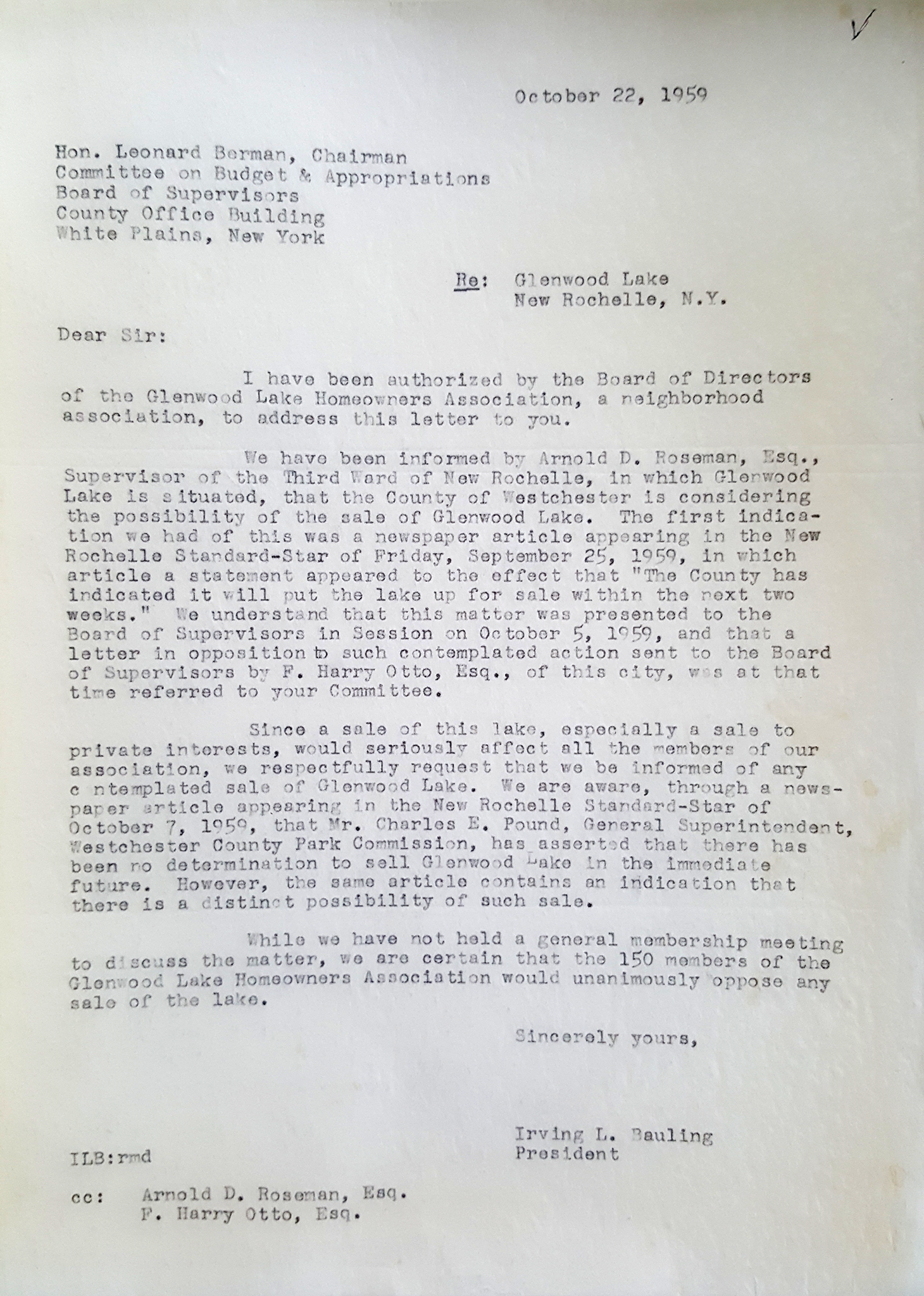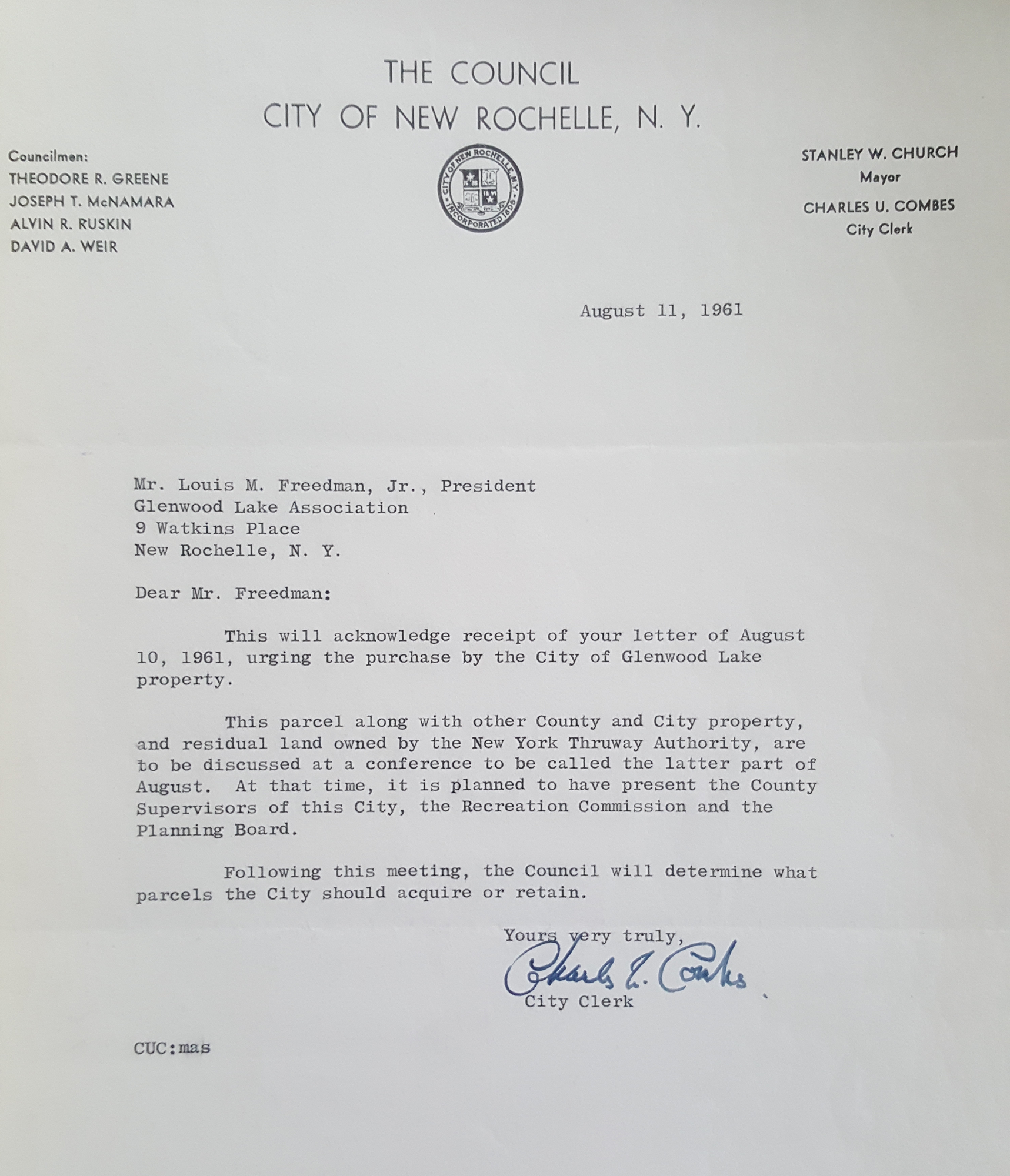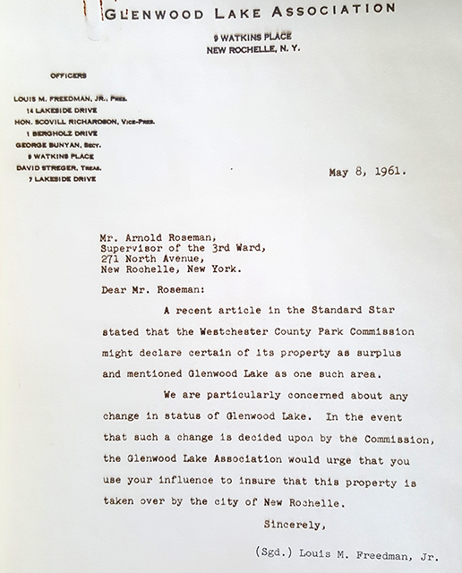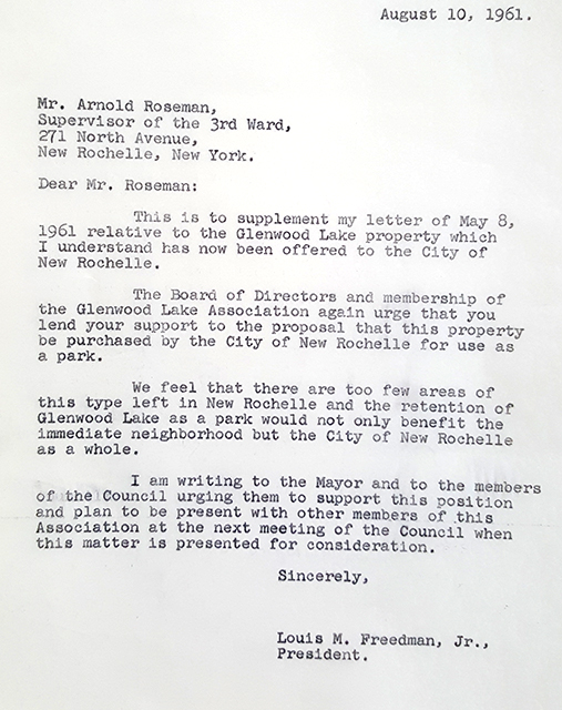 Why does City of New Rochelle own Glenwood Lake? I have been disheartened to recently learn about apparent violations of legal commitments for Glenwood Lake to have kept some of the parcels of land lost to sales by the City and apparent encroachment by privately neighbors, but there is a park. Here's a bit of the history of how the park was secured.