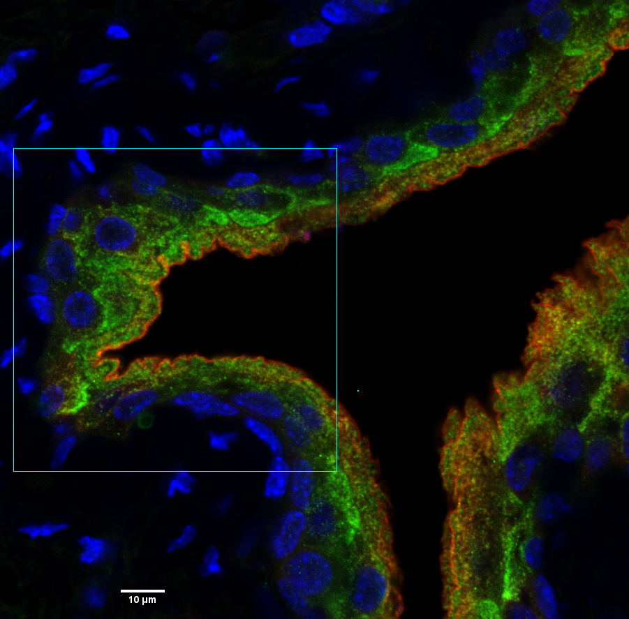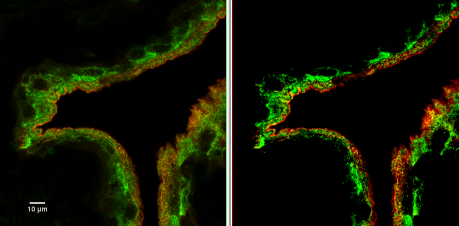 Quantification of the raw data (left) may lead to knowledge of the presence of, or more subtlely a gradient of, protein expression from cells more basal to the apical layer or even discovery of a pool of protein in the top cell layer, distinct from the high concentration in the membrane.