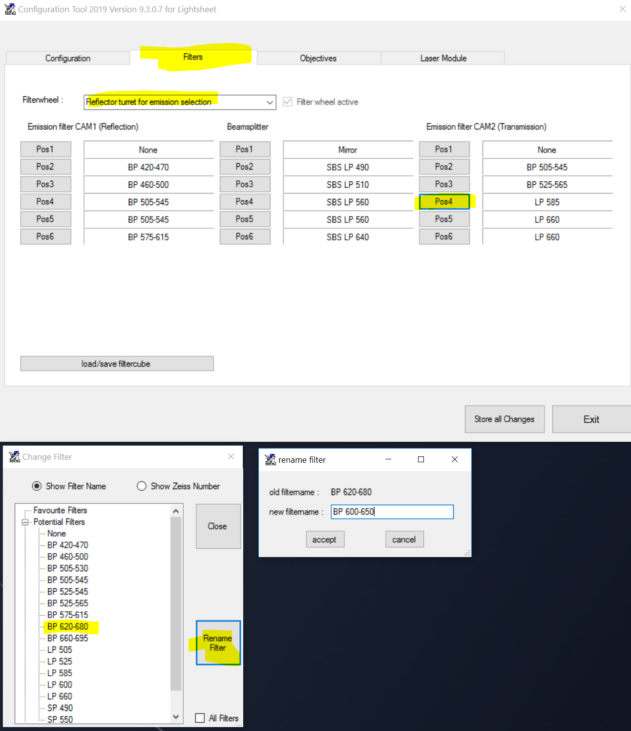 One of the LP585 filteres was replaced with a BP 600/50, but not sure which one. We need to correct this on the web page. Jump to bottom of webpage for instructions how to do this.